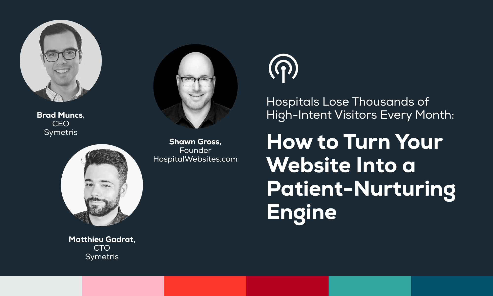 To explore how hospitals can close this gap, I invited Shawn Gross, founder of HospitalWebsites.com and former digital leader at Mass General and Tufts Medical Center, along with Symetris CTO Matthieu Gadrat, who recently analyzed one hundred hospital sites for our latest research. Together, we looked at how hospitals can stop losing high-intent visitors who are still evaluating their options and help guide them toward care over time.